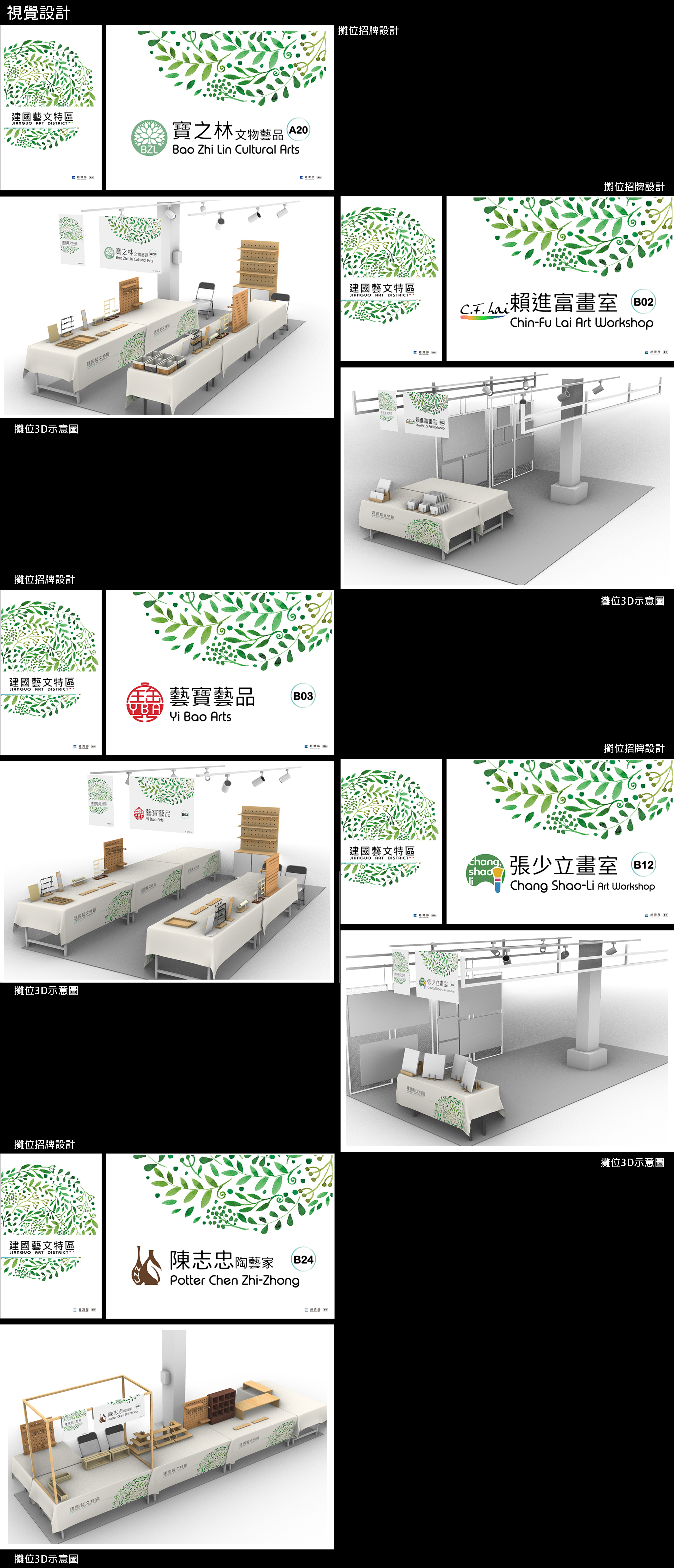 本專案為協助臺北市建國藝文特區執行經濟部「113年傳統市集美學升級暨攤舖優化」,從建國藝文特區市集內精選5個攤舖為示範改造攤舖。透過多次溝通與設計討論,逐步優化攤位形象,包含設計專屬Logo、攤位招牌、攤位桌巾,以及落地型與桌上型陳列架,最後並輔導攤商進行商品陳列美化,提升整體視覺質感。