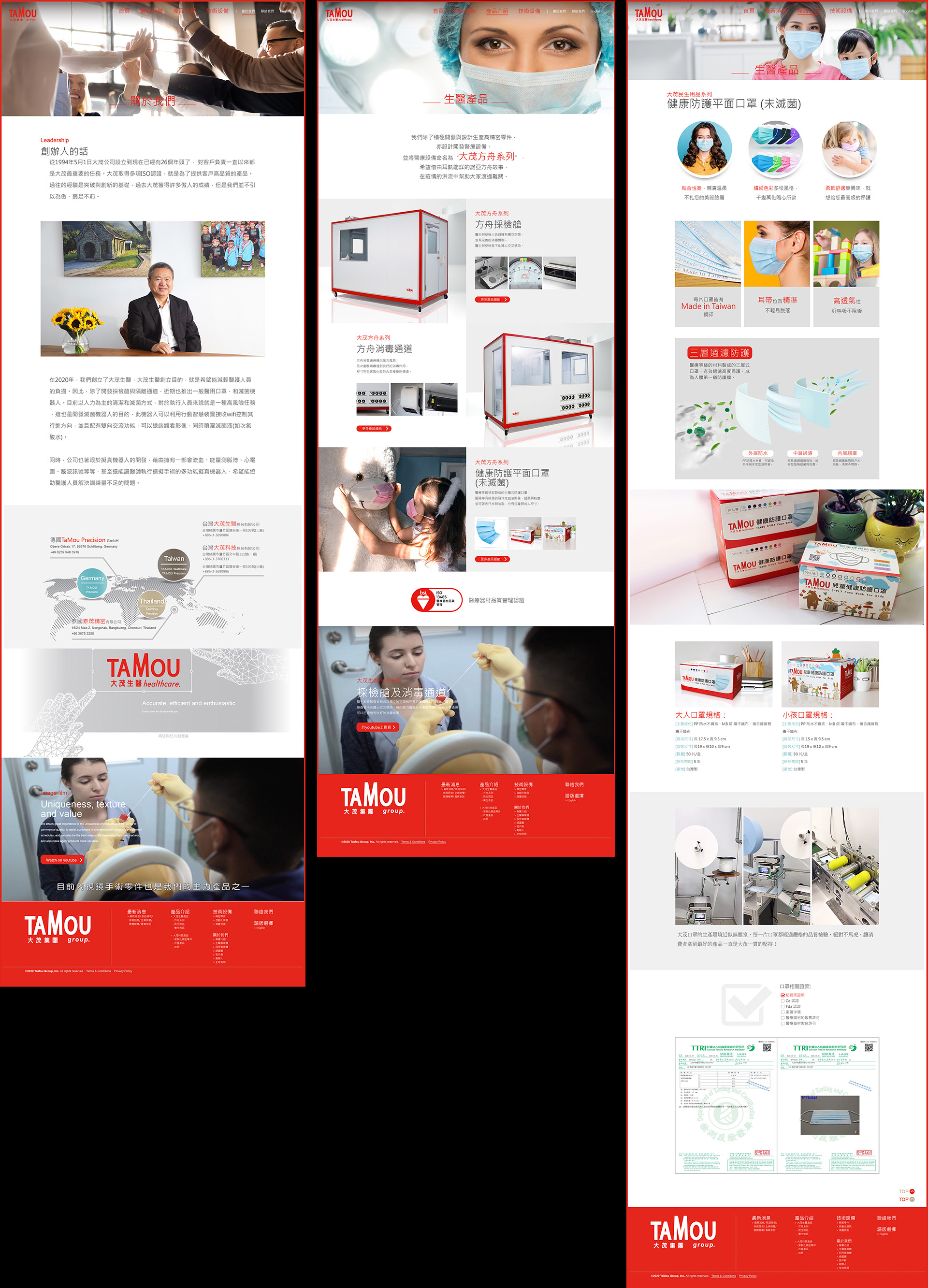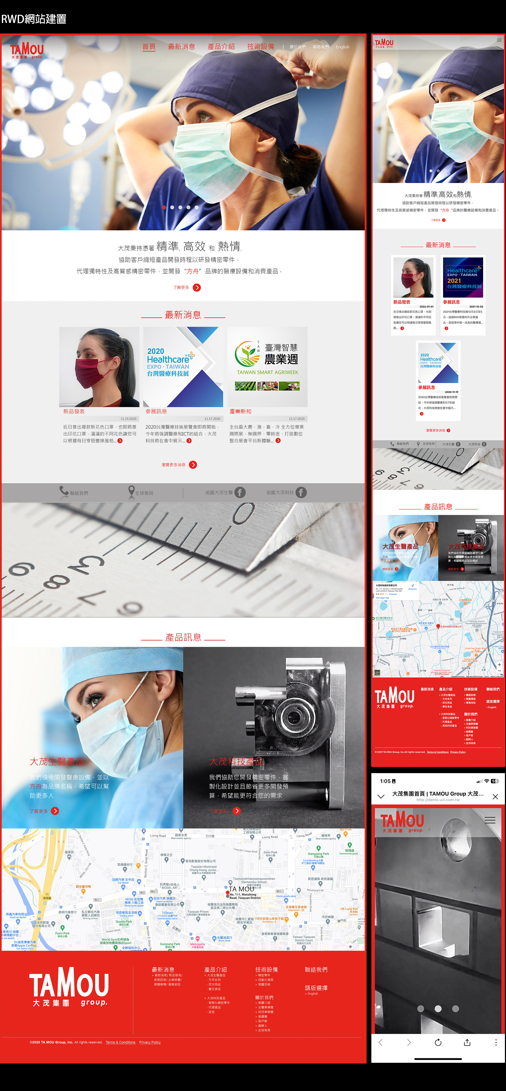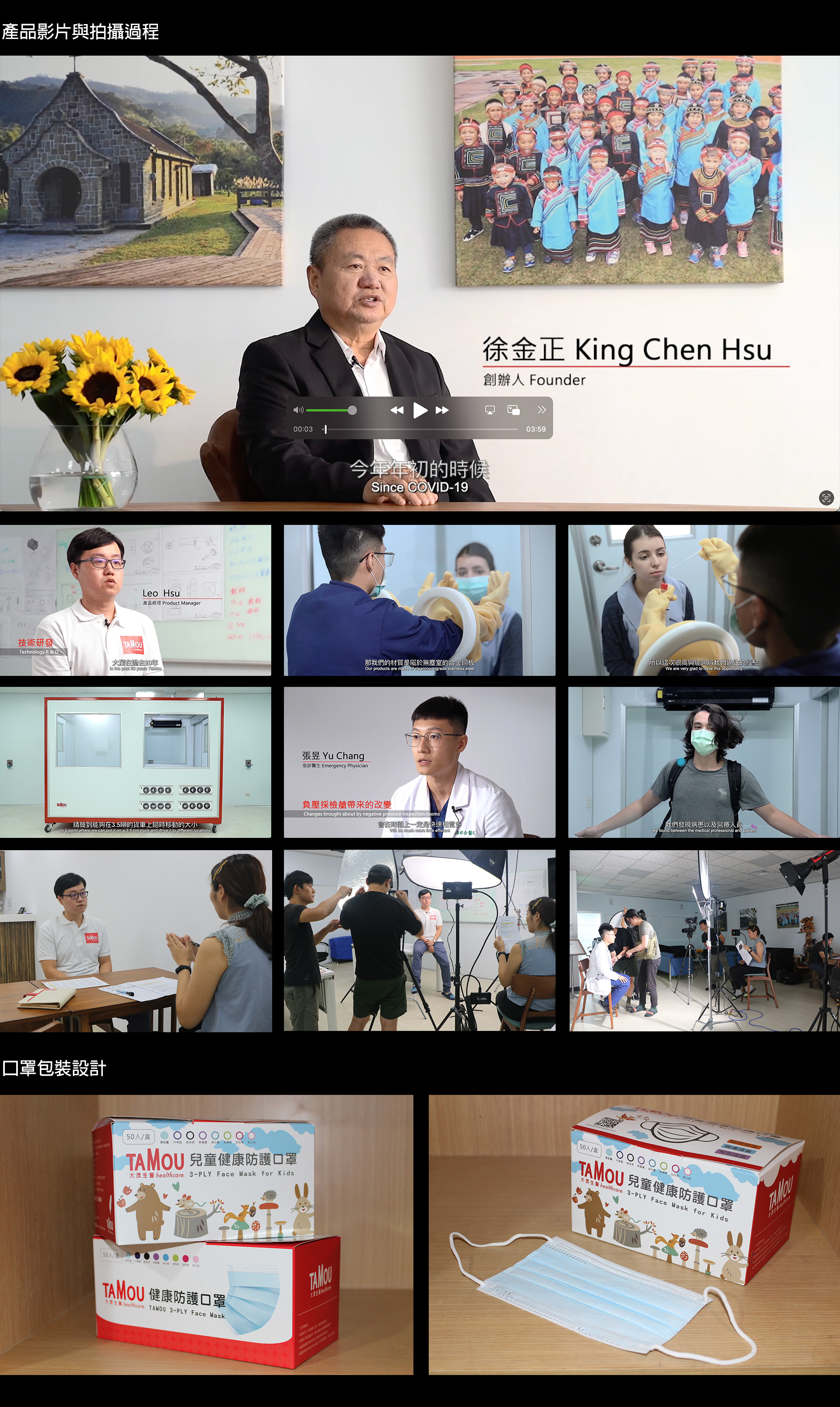 本次專案協助拍攝疫情期間的「方舟採檢艙」產品影片,以及健康防護平面口罩之口罩彩盒印製,以及大茂RWD網站建置。
